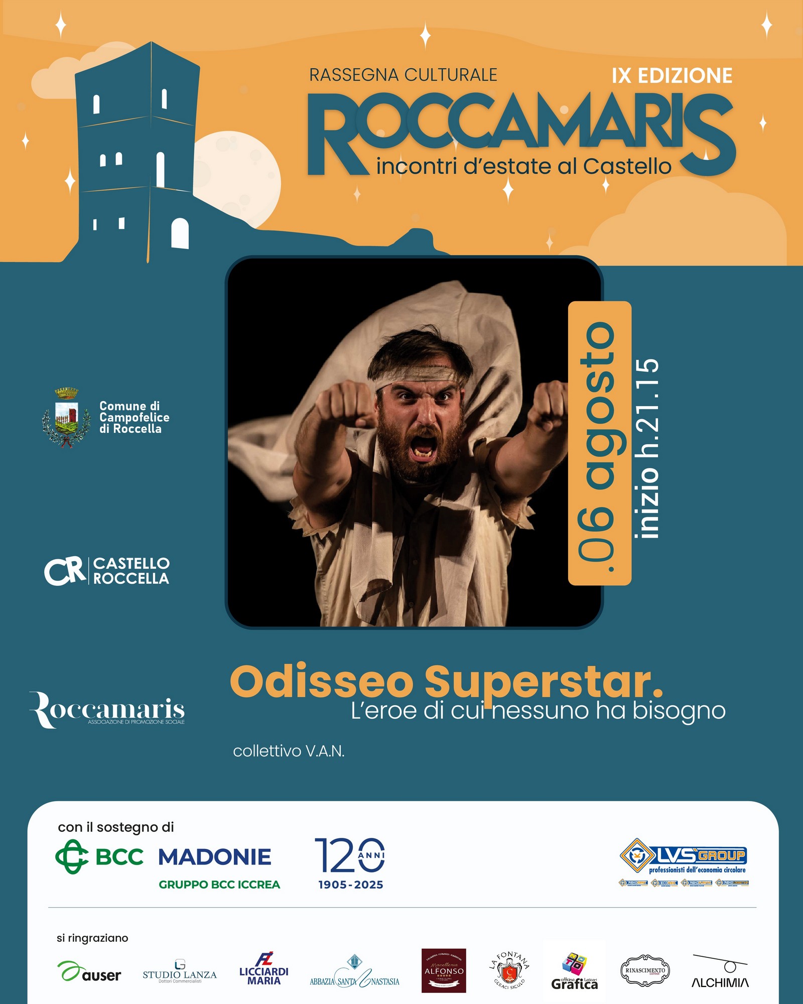 Per il secondo appuntamento di “Roccamaris. Incontri d’estate al Castello”, la rassegna culturale organizzata dal Comune di Campofelice di Roccella (PA) e dall’omonima associazione Roccamaris APS, il 6 agosto a partire dalle 21.15 al Castello di