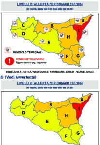 Il Dipartimento della Protezione Civile della Regione siciliana ha diramato il nuovo bollettino per il rischio meteo-idrogeologico e idraulico fino alle ore 24 di mercoledì 21 gennaio. La nuova previsione
