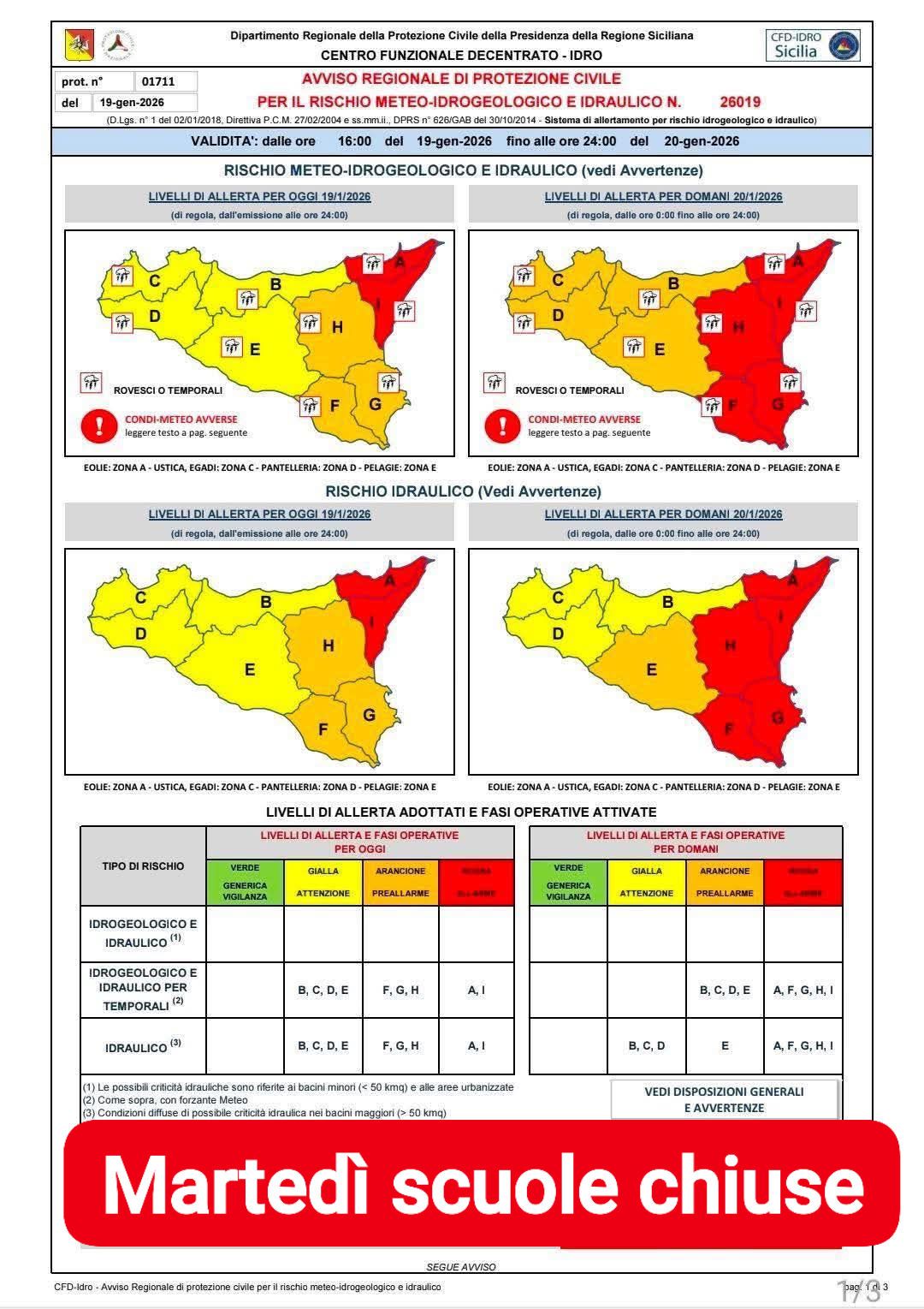 COMUNICAZIONE ALLA CITTADINANZAMARTEDÌ 20 GENNAIO SCUOLE CHIUSE Si informa la cittadinanza che, per la giornata di domani, martedì 20 gennaio 2026, tutte le scuole di ogni ordine e grado, compresi gli