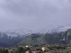 E’ arrivato il freddo artico con nevicate a bassa quota. Le Madonie sono state raggiunte dai fiocchi di neve fino a quota mille metri. Le montagne sopra Castelbuono (nella foto)