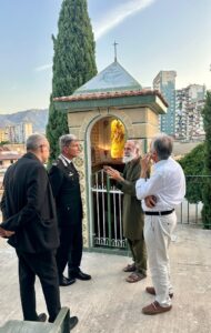 Il Generale di Brigata Ubaldo DEL MONACO, Comandante della Legione Carabinieri “Sicilia”, accompagnato dal cappellano militare Don Salvatore FALZONE e dal Maresciallo Maggiore Salvatore BELLOMONTE, Comandate della Stazione Carabinieri Palermo